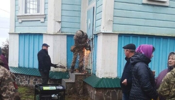 The faithful of the canonical Church say that the seizure was led by the village authorities, represented by the chairman of the village council, Andriy Borysovych Radulevych. The OCU adherents brought in volunteers and with their assistance cut the locks off the church.