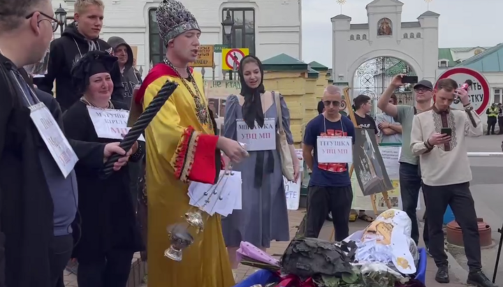 Yaryna Aryeva (center) at the "funeral" of the UOC. Photo: UOJ