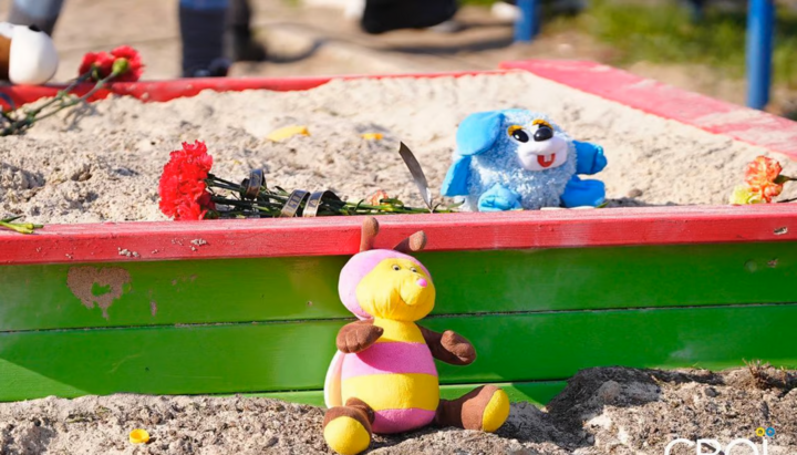 Toys on a playground in Kryvyi Rih where children were killed by a Russian missile strike. Photo: СВОЇ