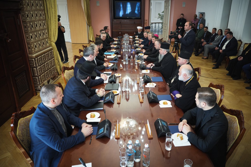 On April 22, 2025, Ukrainian President Volodymyr Zelensky met with members of the All-Ukrainian Council of Churches and Religious Organizations (UCCRO) at St. Sophia of Kyiv, according to the website of the Presidential Office.