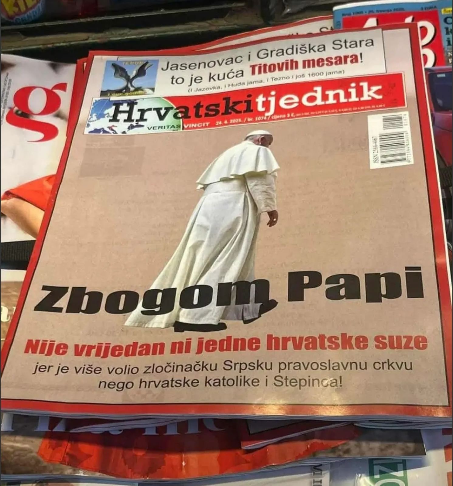 A Croatian weekly insulted the memory of Pope Francis for his refusal to canonize Stepinac, who had collaborated with the Ustaše.