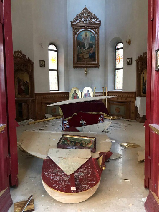 After the Russian strike, the altar in the church was destroyed, and the walls, windows, and church utensils were damaged.