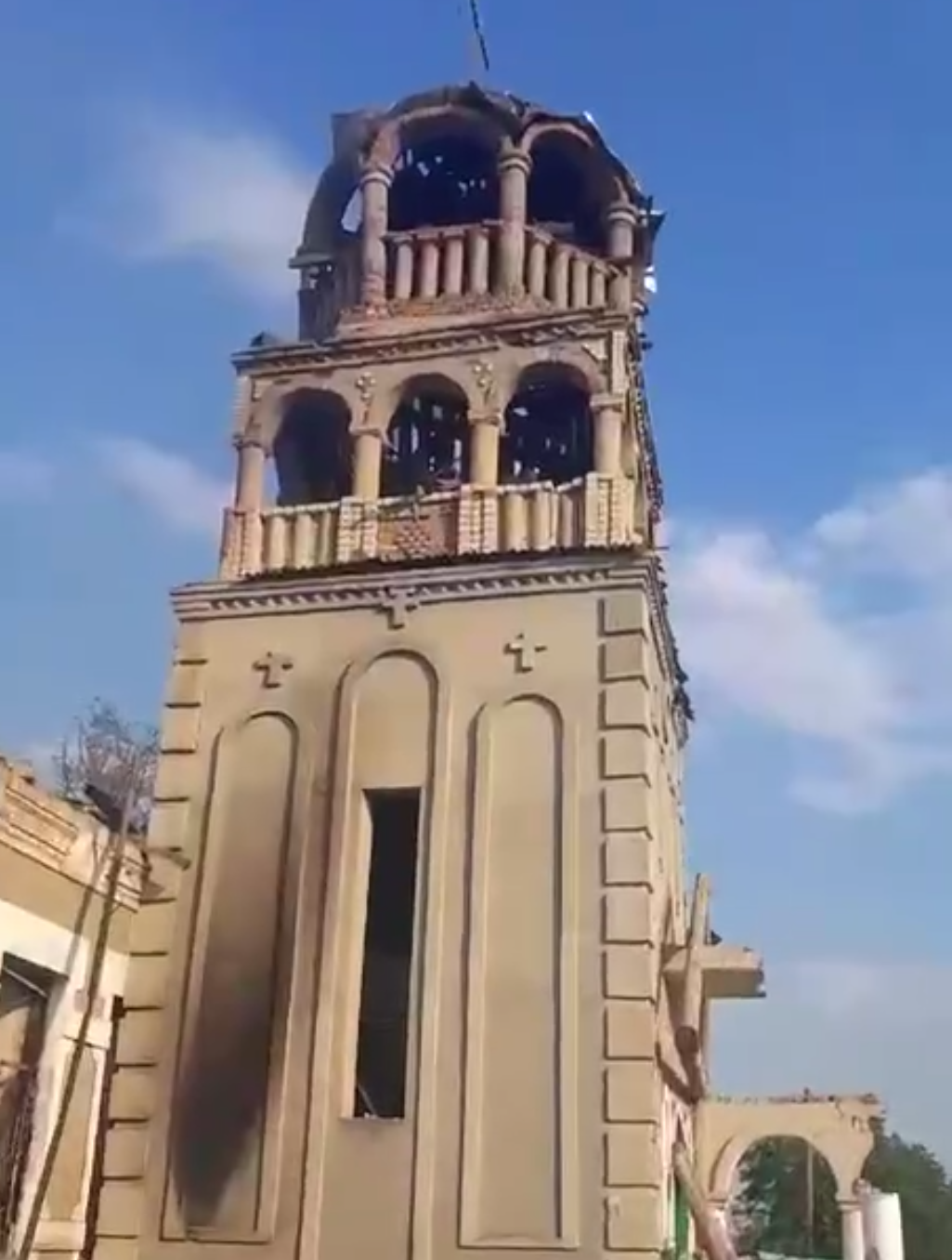 Photos and videos published show that only ruins remain of the church, with just some walls and the bell tower left standing.