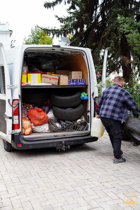 The shipment was delivered to the Lavra by volunteers from the “Pobratym” association in Kamin-Kashyrskyi. This was already their fourth trip to the monastery this year.