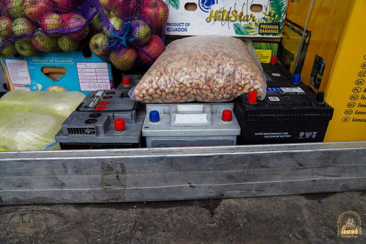 The majority of the aid – 22 tons – was directly delivered to the Sviatohirsk Lavra. The remaining cargo was distributed among other needy in tthe Donbas. Among the delivered items are over 10 tons of potatoes, fresh vegetables, canned goods, cookies, tea, and coffee. The cargo also includes generators, household chemicals, household supplies, greenhouse film, shoes, and feed for the inhabitants of the Lavra's aviary.