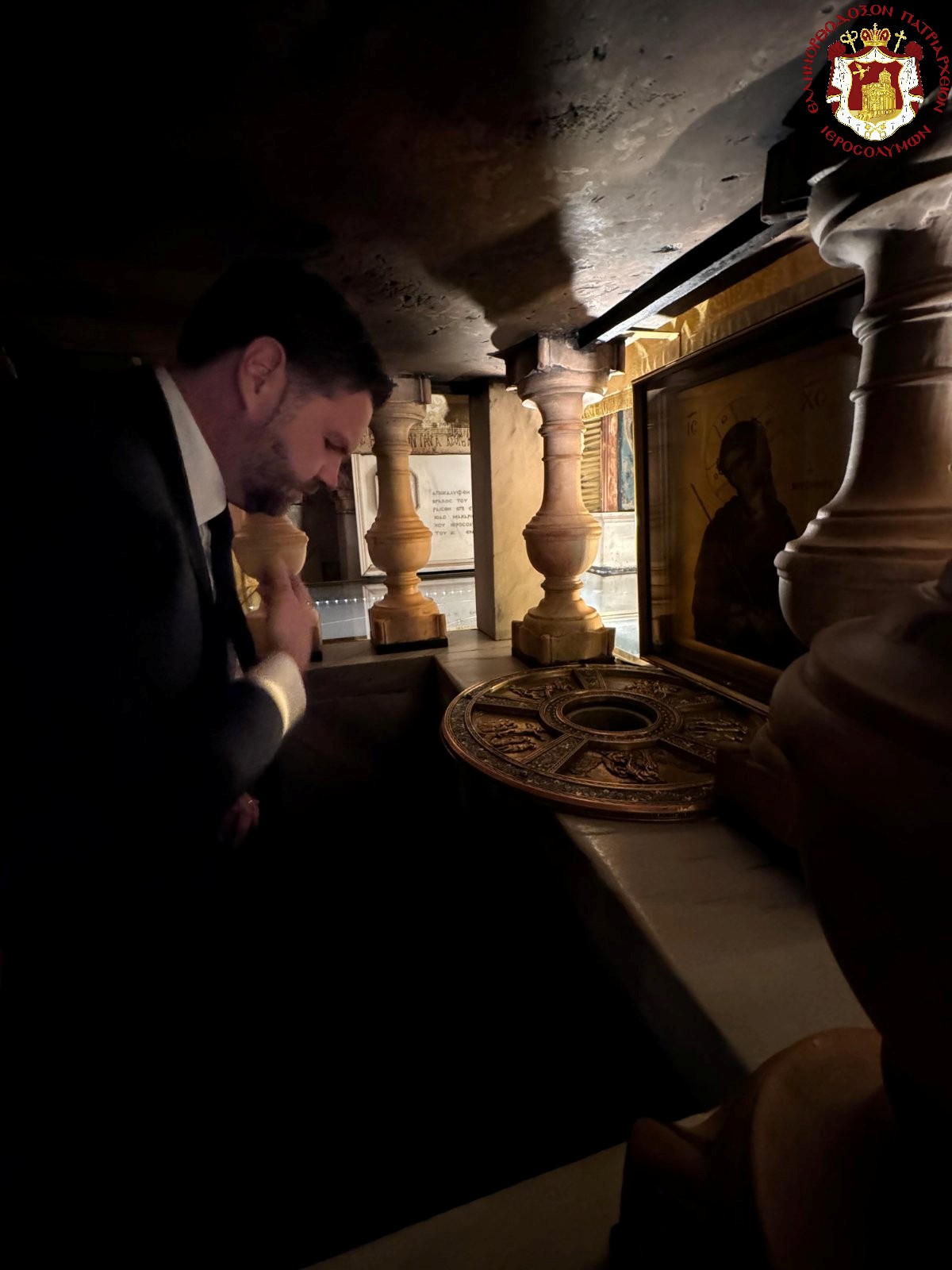 The Patriarch personally led the vice president and his spouse through the holy places of the church, explaining their profound significance for the entire Christian world as the site of the Lord’s Crucifixion and Resurrection.