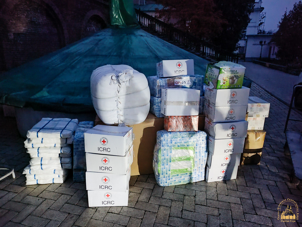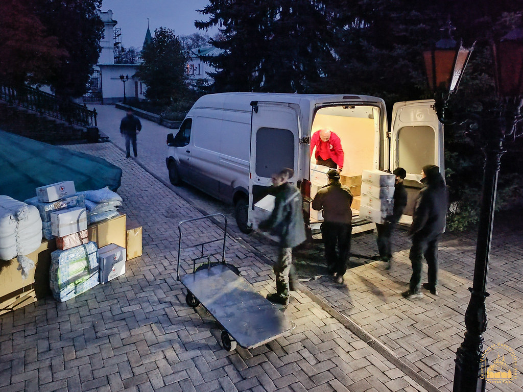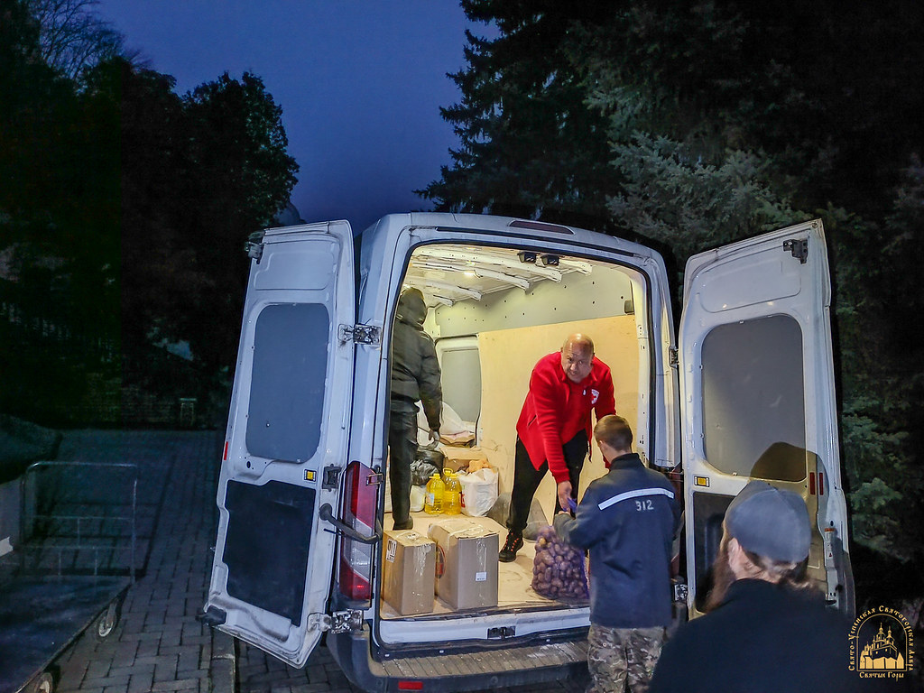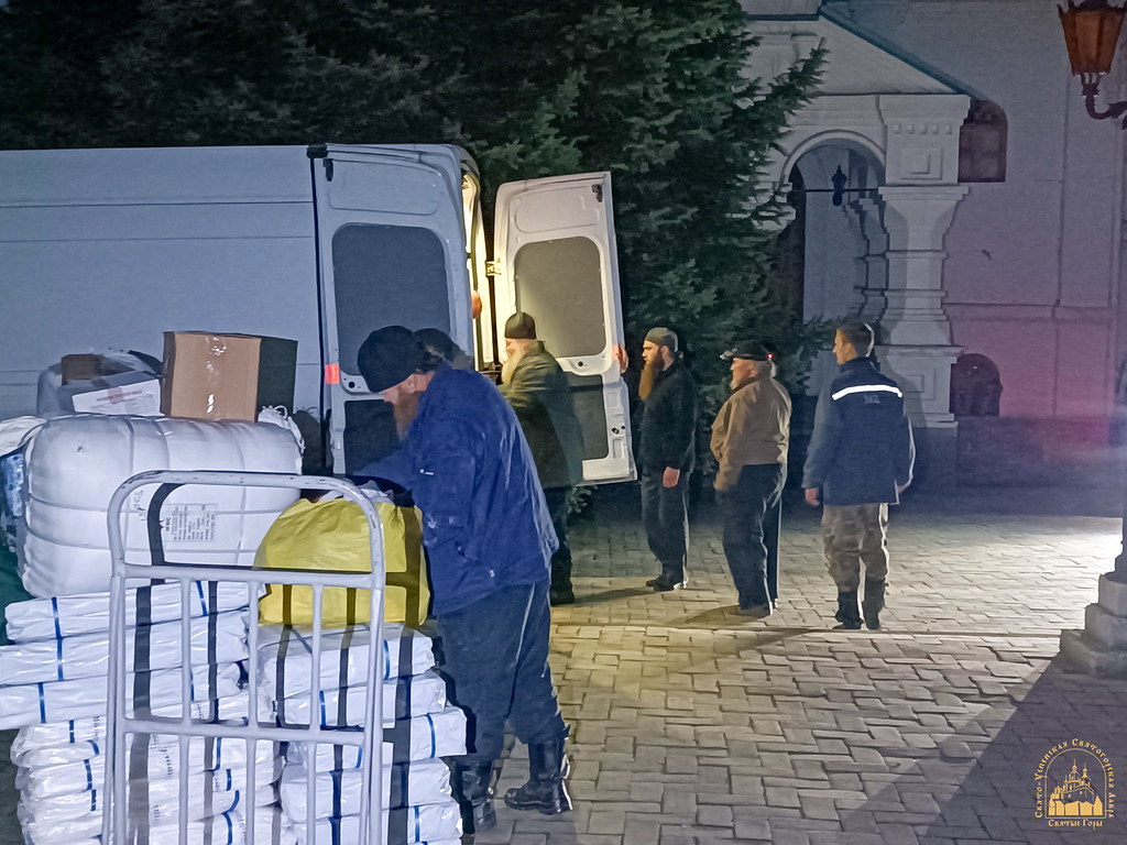 The aid was collected on the initiative of the church’s rector, Archpriest Ioann Neher, to support the Lavra’s monastic brotherhood, the sisters of the Skete of the Icon of the Mother of God “Joy of All Who Sorrow,” and refugees currently residing in the monastery.