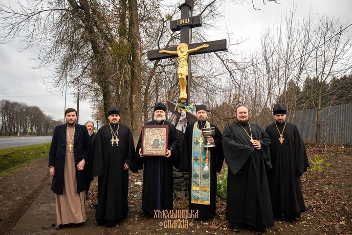 At the entrances to Khmelnytskyi from all four sides, Metropolitan Victor sprinkled the roadside crosses with holy water and blessed the city and its residents with the Kasperiv Icon.