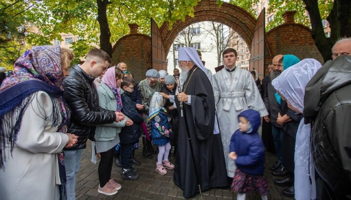 Μητροπολίτης Οδησσού και Ισμαήλ Αγαθάγγελος ευλογεί το ποίμνιο. Φωτογραφία: γραφείο τύπου της επισκοπής Οδησσού