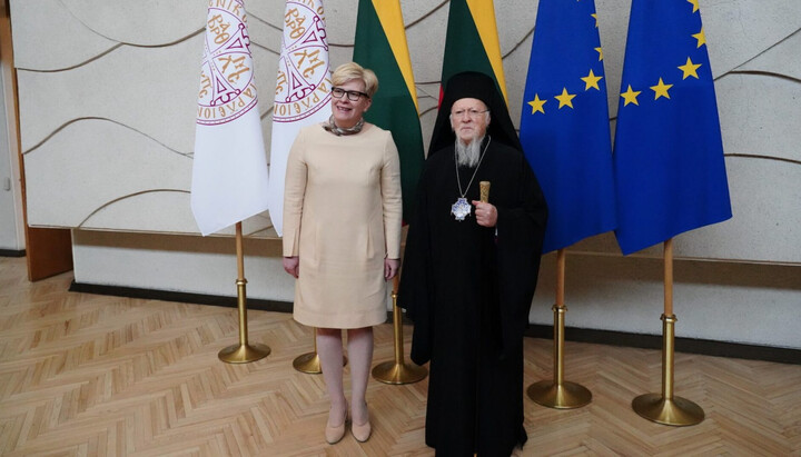 Η πρωθυπουργός της Λιθουανίας Ingrida Simonyte και ο Πατριάρχης Βαρθολομαίος. Φωτογραφία: fosfanariou.gr