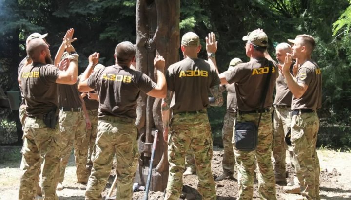 Οι μαχητές του "Αζόφ" λατρεύουν το είδωλο του Περούν. Φωτογραφία: ukranews.com
