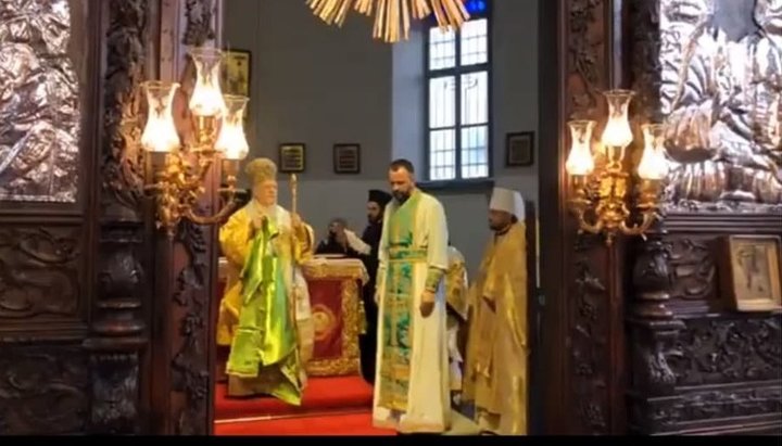 Της Θείας Λειτουργίας προεξήρχε ο Οικουμενικός Πατριάρχης Βαρθολομαίος, συμπαραστατούμενος από τους «ιεράρχες» της OCU Αλέξανδρο Ντραμπίνκο και Ματθαίο Σεβτσούκ.