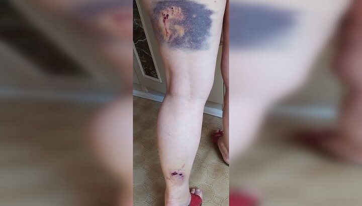 Σημάδια δαγκώματος από σκύλο του Ζίνκεβιτς στο πόδι ενορίτη της OCU. Φωτογραφία: volyntimes.com.ua