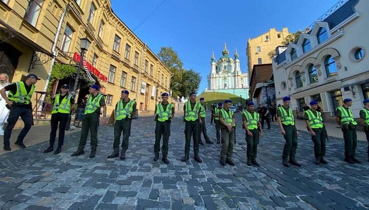Εθνική Αστυνομία της Ουκρανίας απέκλεισε εντελώς την κυκλοφορία κατά μήκος της ιστορικής καθόδου του Αγ. Ανδρέα στην περιοχή Ποντόλ του Κιέβου λόγω της άφιξης του Πατριάρχη Κωνσταντινουπόλεως Βαρθολομαίου στην Εκκλησία του Αγ. Ανδρέα, αναφέρεται από την ηλεκτρονική δημοσίευση VESTI.
