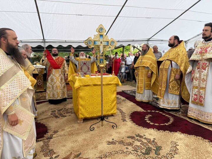 Η θεία λειτουργία πραγματοποιήθηκε σε σκηνή, που εγκαταστάθηκε σε οικόπεδο, το οποίο παραχωρήθηκε από τους ενορίτες.