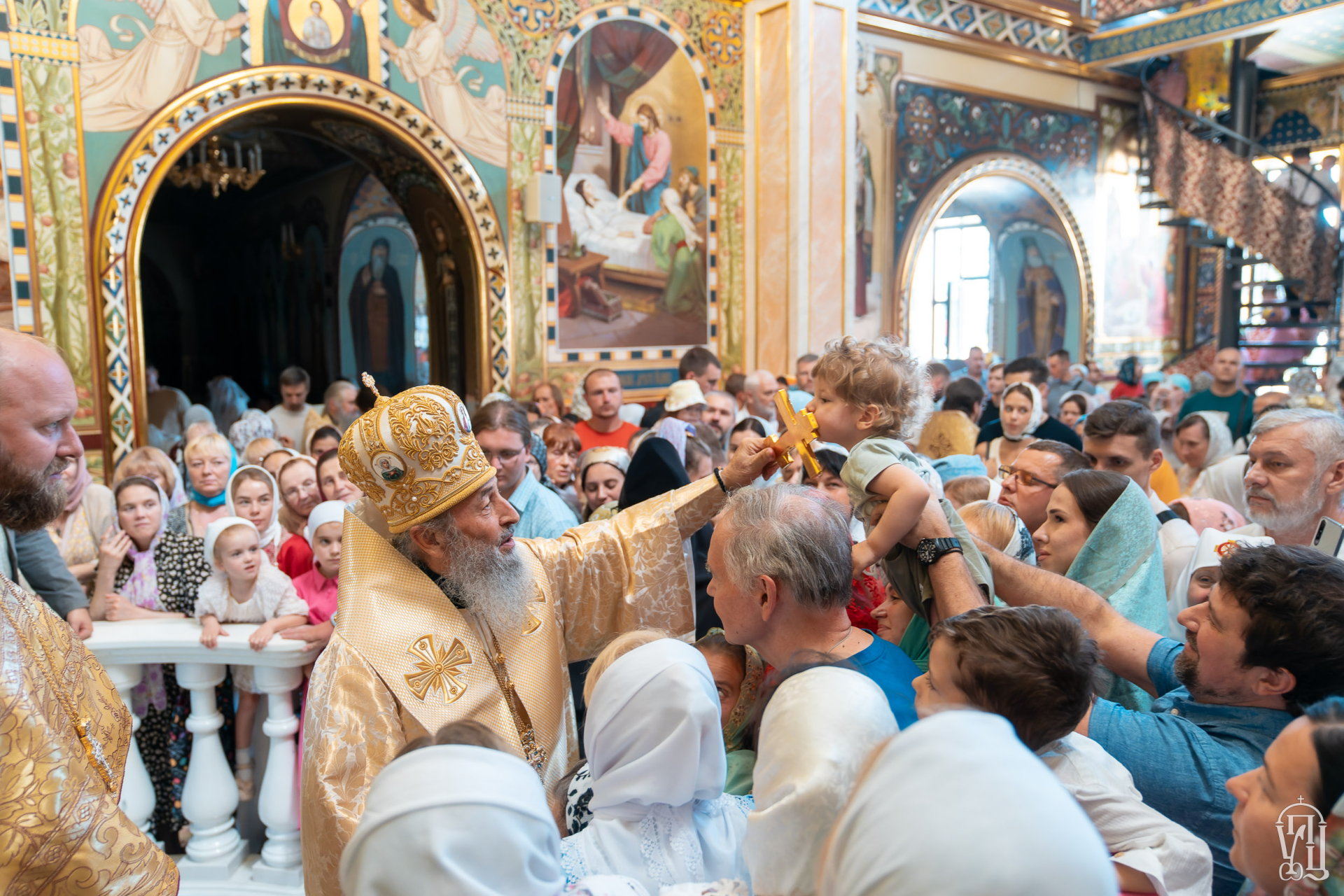 La sfârșitul Liturghiei, Mitropolitul Onufrie a felicitat credincioșii cu ziua de duminică, le-a urat binecuvântarea lui Dumnezeu, bunuri pământești și cerești, precum și pace pe pământul ucrainean.