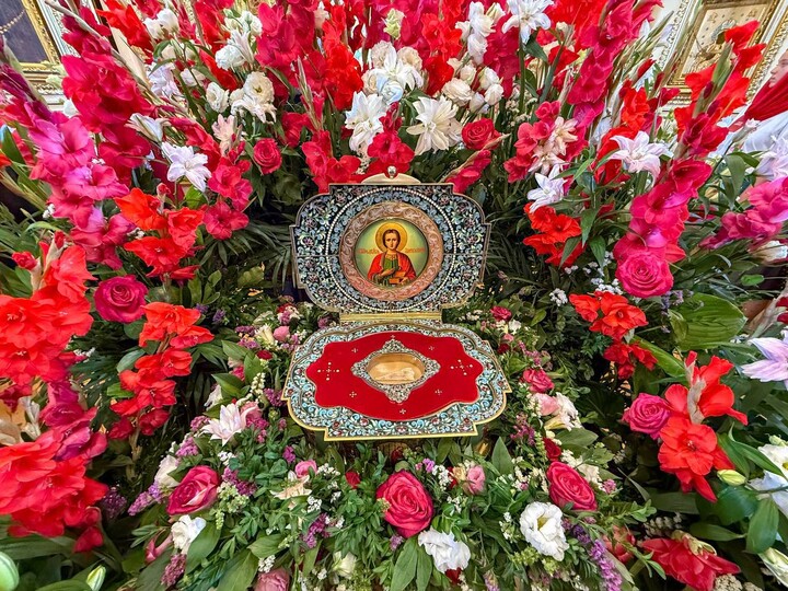 În timpul slujbei s-au înălțat rugăciuni pentru pace în Ucraina și binele duhovnicesc al poporului. După încheierea liturghiei, a fost săvârșit un Te-Deum festiv în fața raclei cu o părticică din moaștele sfântului Pantelimon, după care a avut loc o procesiune pe teritoriul mănăstirii. Credincioșii au avut posibilitatea să se închine în sfântul lăcaș și să primească binecuvântarea clerului.