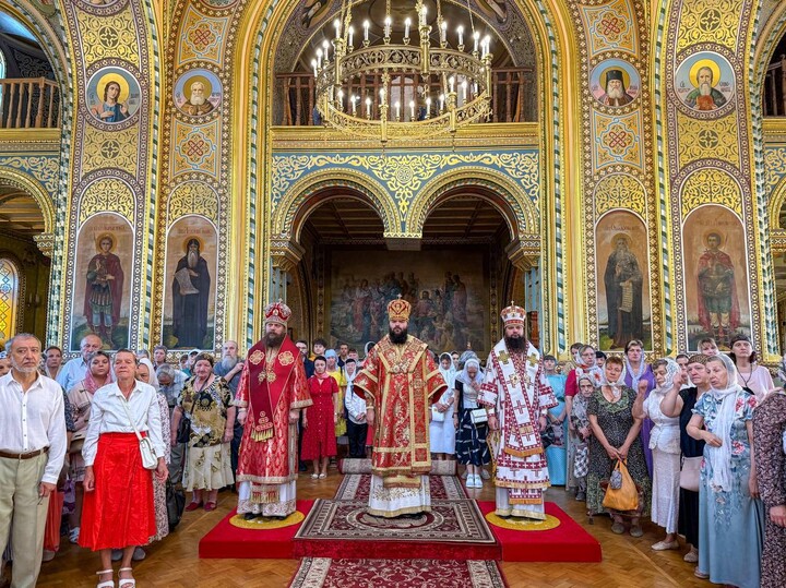 Liturghia festivă a fost condusă de arhiepiscopul de Iujne, Diodor, în conlucrare cu arhiereii și clerul eparhiei Odesa