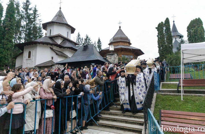 După slujbă, pelerinii ortodocși s-au închinat cuvioșilor Paisie (Olaru) și Cleopa (Ilie) înaintea sfintelor lor moaște.