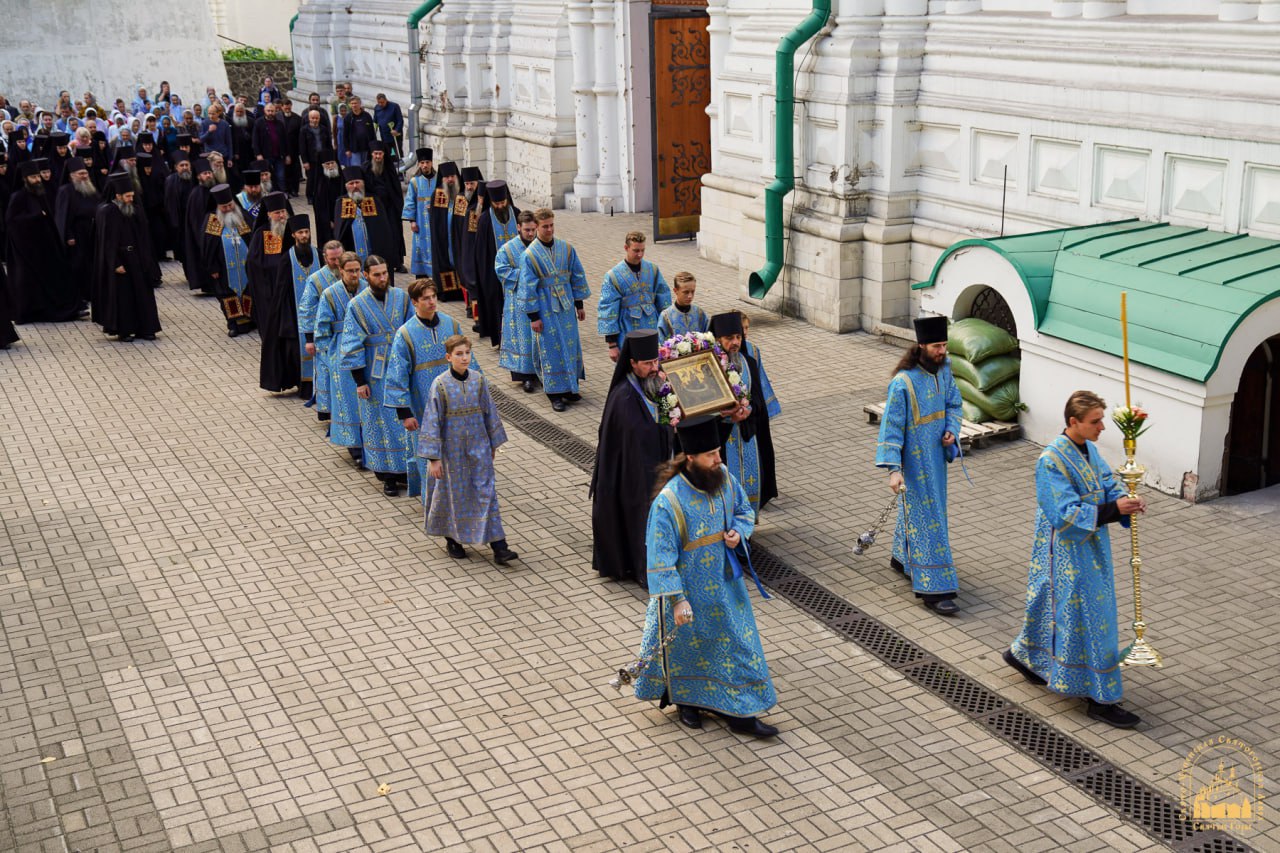 După Liturghie a avut loc o procesiune în jurul bisericii principale a Lavrei. Întorcându-se în catedrală, călugării și credincioșii au cântat rugăciunea «Împărăteasa mea Preabună». Ziua de sărbătoare s-a încheiat cu rânduiala Panaghiei și o masă comună.