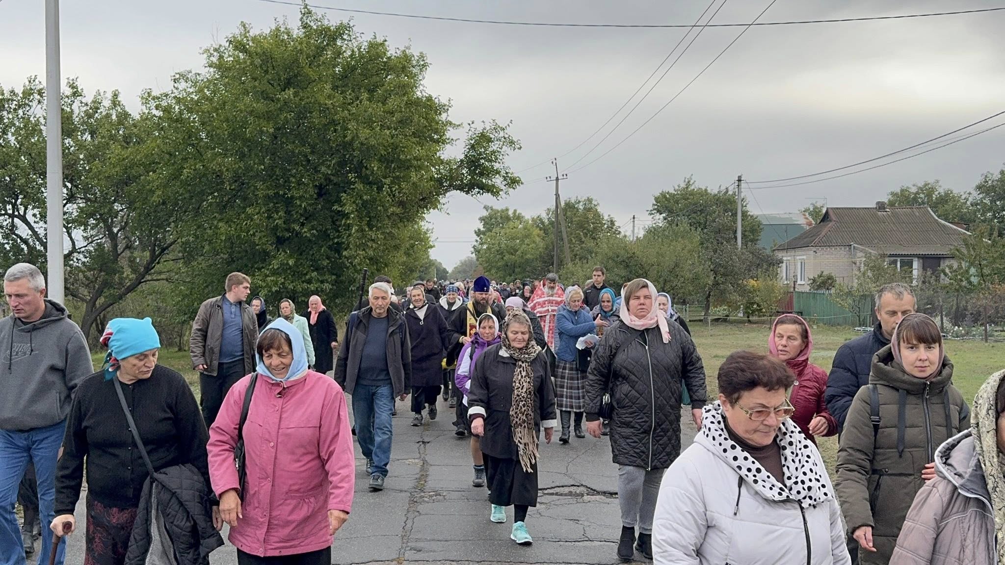 Sute de credincioși și preoți cu cruci, prapuri și icoane cu rugăciuni și cereri de ajutor de la Dumnezeu au plecat din satul Hannovka spre biserica Înălțării Sfintei Cruci din satul Iskrovka, regiunea Kirovograd. Procesiunea a fost tradițional condusă de mitropolitul Alexandriei și Svetlovodsk Bogolep.