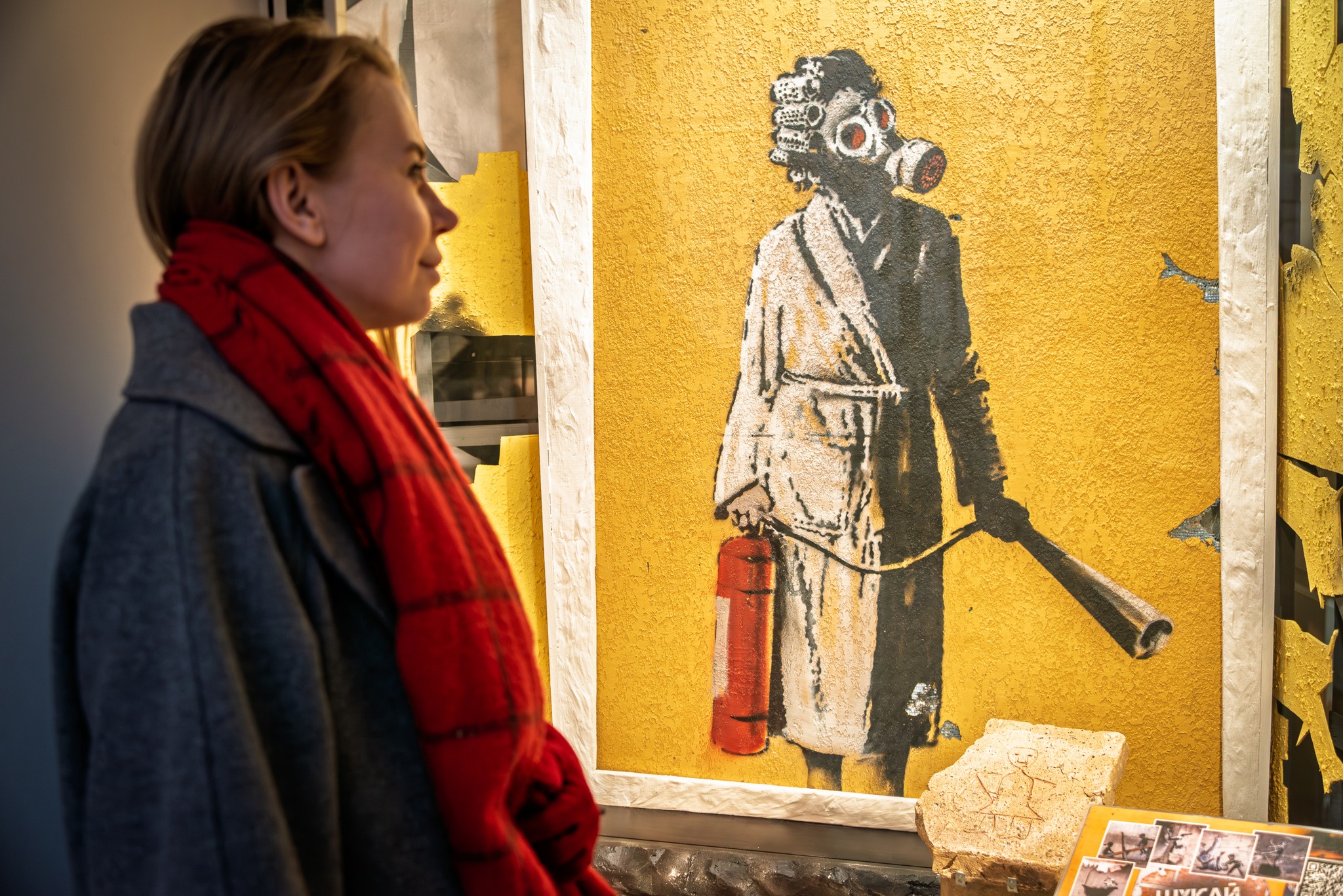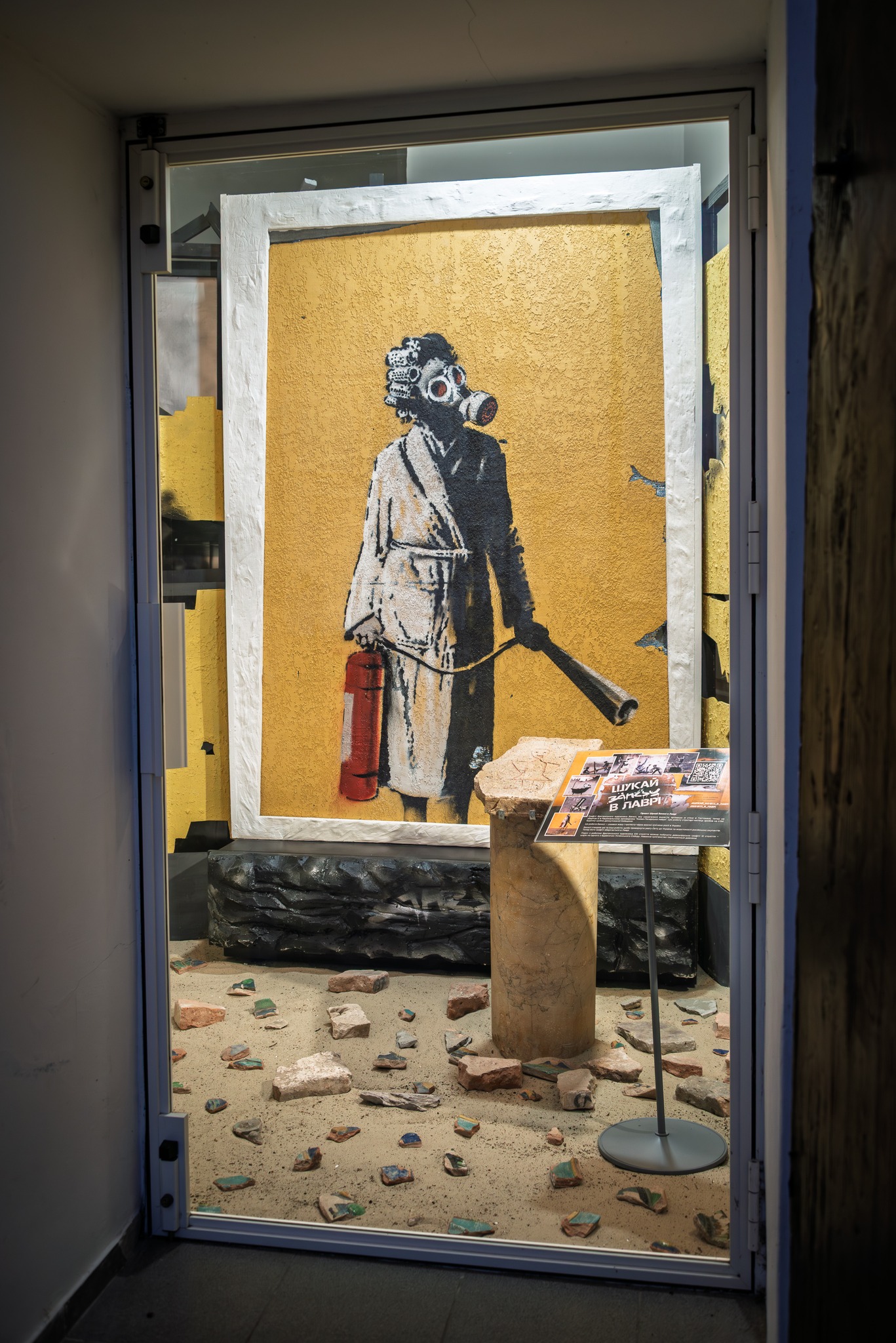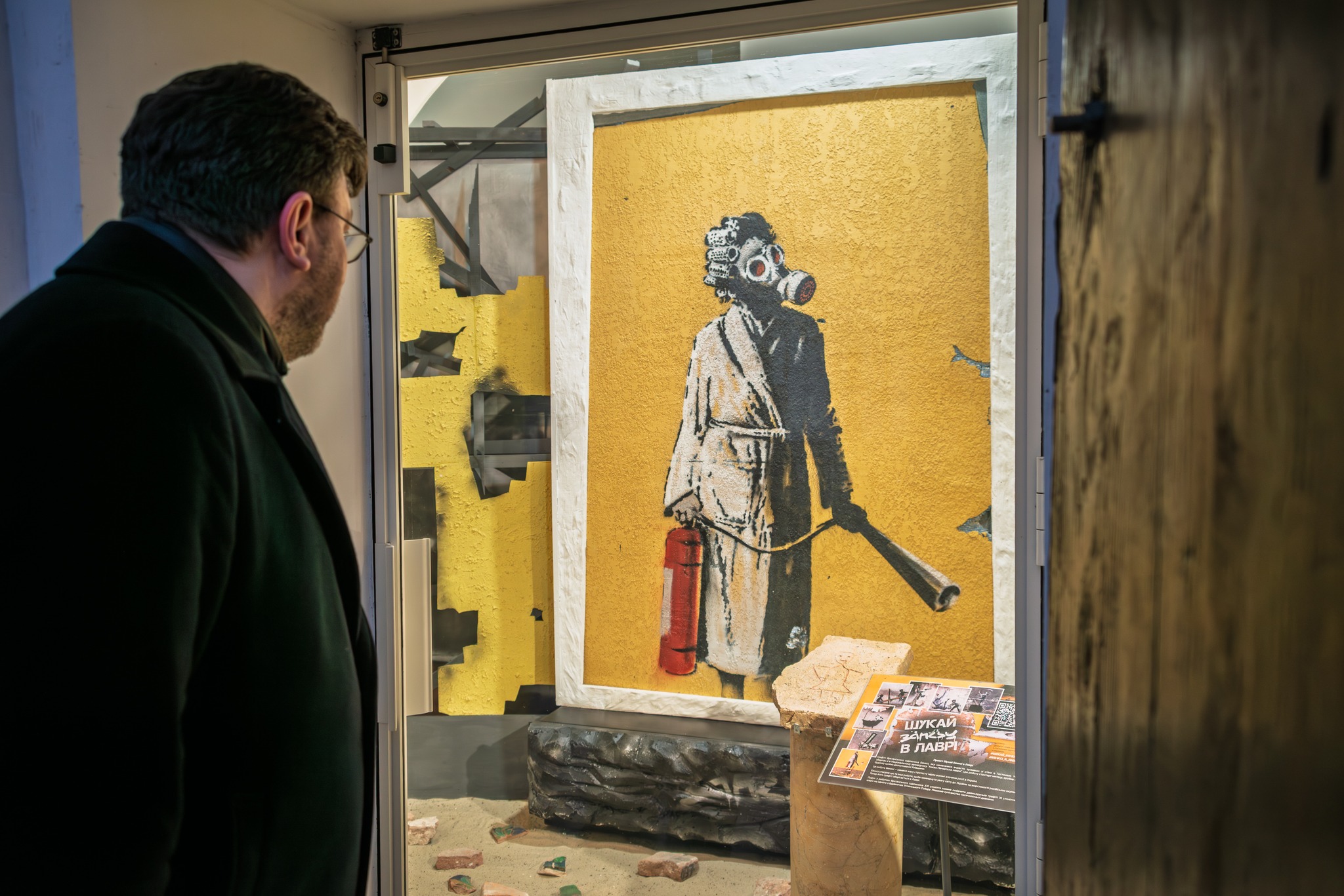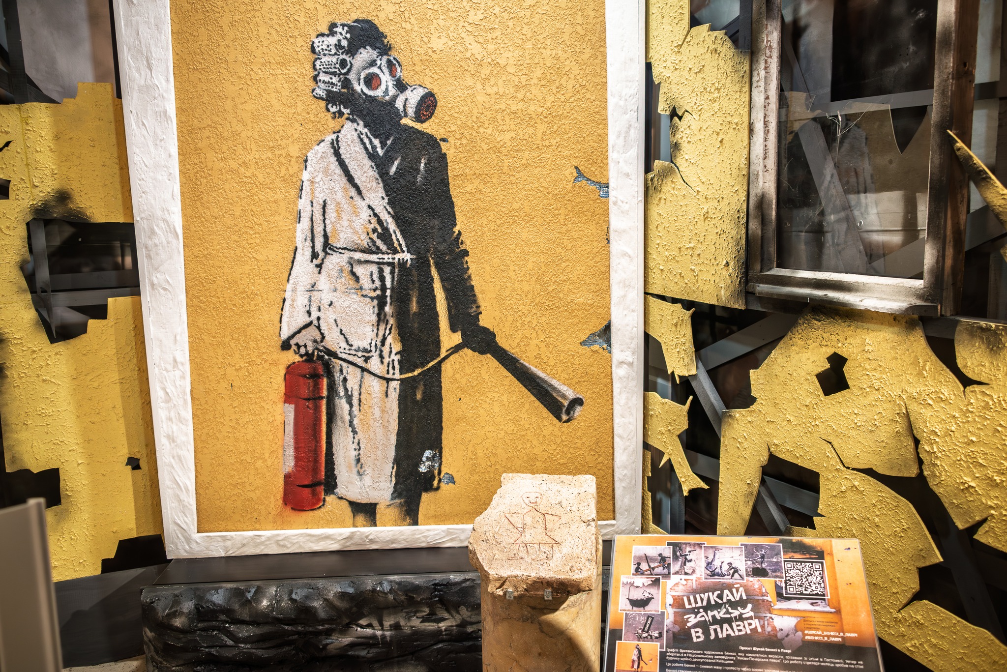 În Rezervația Națională «Kievo-Pecerska Lavra» a fost expus un fragment de perete cu graffiti de Banksy — imaginea unei femei în halat cu un extinctor și bigudiuri. Muzeografii informează că exponatul este amplasat în Marea Clopotniță a Lavrei, lângă un graffiti vechi rusesc din secolul al XI-lea, creat de unul dintre constructorii Catedralei Adormirii Maicii Domnului.