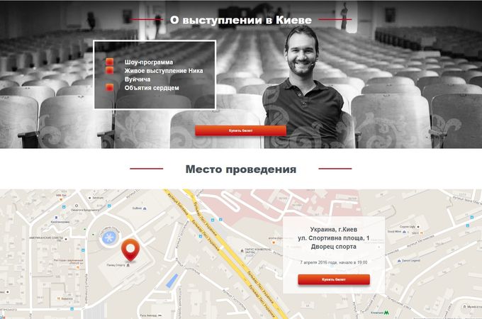 7 апреля во Дворце спорта в Киеве впервые выступит с программой «Жизнь без границ» человек-легенда, христианин и оптимист Ник Вуйчич. Об этом сообщается на его персональном сайте.