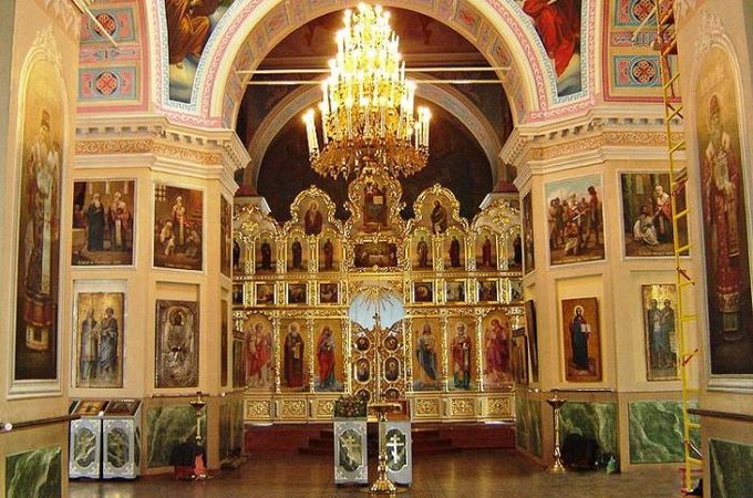 Иконостас, отделяющий алтарь от средней части, особенность православной церкви. С одной стороны, он преграда между основной частью храма и алтарем, сохраняющая в тайне то, что происходит в святая святых. С другой, иконы, находящиеся на нем, настраивают верующих на молитву. В центре иконостаса находятся Царские врата, называемые так, потому что во время богослужения в них незримо входит Господь Царь Славы. Он входит подобно тому, как входил Господь в Иерусалим, "грядя на вольные страдания". Обычно над Царскими вратами расположена икона Тайной Вечери, ведь именно в память о ней в алтаре совершается таинство Евхаристии. Кроме Царских врат, в алтаре есть так называемые боковые, или дьяконские двери, в которые входят дьяконы, служители, помогающие священнику совершать богослужение. На дьяконских дверях изображены либо Архангел Гавриил, либо Архангел Михаил, либо первые дьяконы, пострадавшие за веру. По канонам Русской православной церкви, если смотреть на иконостас, став к нему лицом, то слева всегда будет икона Богородицы, а справа икона Спасителя. И дальше, с правой стороны, за иконой Спасителя и южными дьяконскими дверьми, должна следовать икона, посвященная тому святому или событию, в честь которых освящен храм. В устройстве иконостаса всегда должна быть икона Деисус, или Моление, обычно она начинает ряд, и всегда есть иконы, посвященные двенадцати главным праздникам, пророческий ряд.