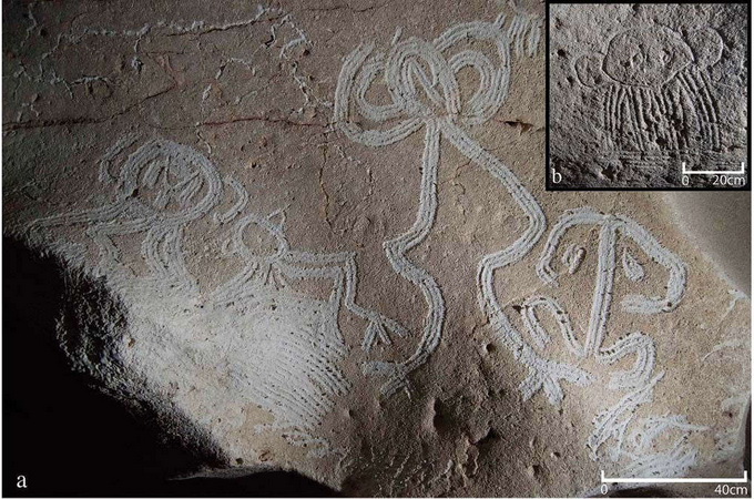 Находку удалось сделать группе археологов из Британского музея (Лондон) и Лестерского университета. Речь идет об изображении геометрических фигур и зооморфных существ, однако настоящим сюрпризом стали надписи на стенах, сделанные европейцами.