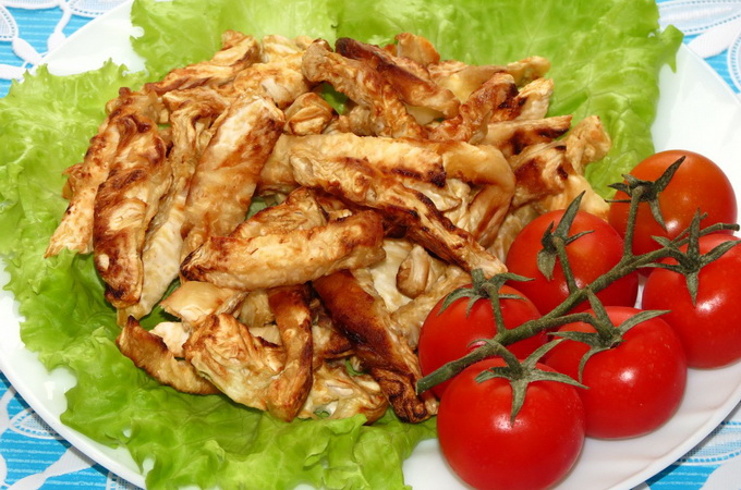 Обваливают в муке и обжаривают до золотистого цвета.
