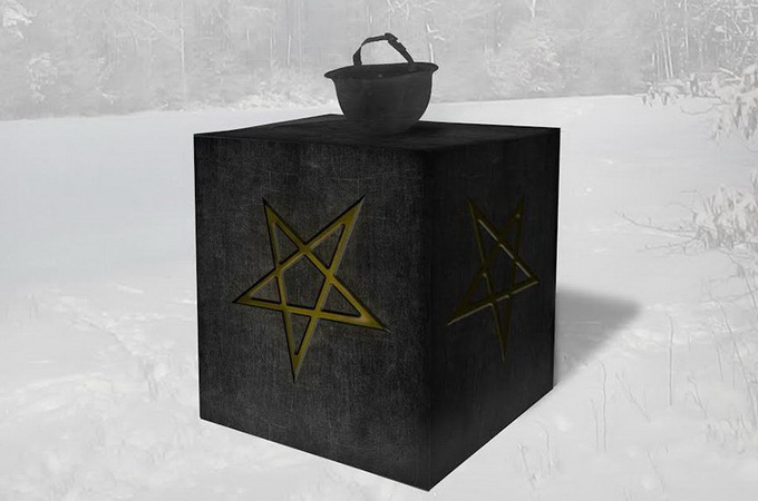 Согласно заявлению сатанистов, это будет «черный куб с нанесенными на него пентаграммами и увенчанный перевернутым шлемом».