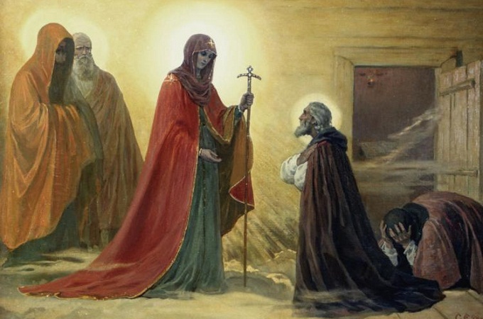Важным моментом в этом явлении было то, что Богородицу сопровождали только ангелы. С ней не было ни одного человека! А вот далее, в житиях святых, мы уже видим иные свидетельства. Преподобному Серафиму Саровскому Матерь Божия явилась вместе с апостолами Петром и Иоанном Богословом. А когда преподобный был в келье с благочестивой старицей Дивеевского монастыря Ириной, то Матерь Божия пришла с 12 девами, большинство из которых были христианские мученицы.