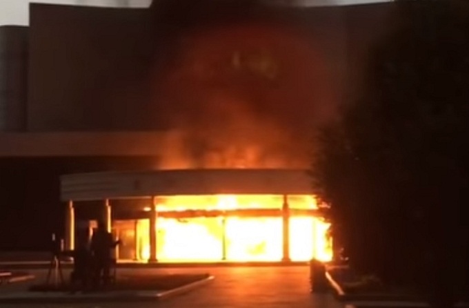 4 сентября автомобиль протаранил вход кинотеатра «Космос» в Екатеринбурге и загорелся. Площадь пожара составила 30 кв. м. Возгорание было ликвидировано. В СМИ появились сообщения, что основной версией поджога является неодобрение подозреваемым фильма «Матильда».