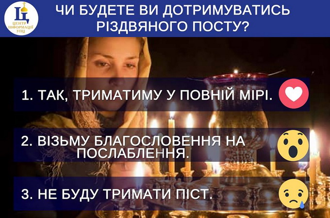 В УПЦ стартовал опрос «Будете ли Вы соблюдать Рождественский пост?»