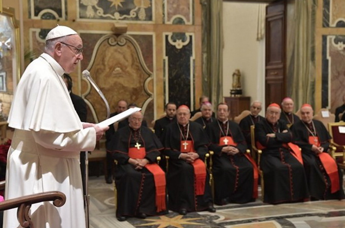 В обращении понтифик высказался по поводу «предателей доверия», которым было доверено провести реформы, но вместо того они «были развращены собственными амбициями и тщеславием». По его словам, когда им дается возможность тихо уйти, они «занимают порочную позицию мучеников, раздавленных системой», вместо того, чтобы признать вину.