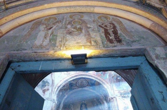 Этот источник освещения был направлен на одну из фресок и наносил вред изображению, о чем сообщил и разместил фотографию в соцсетях один из побывавших на месте историков.