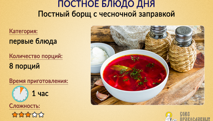 В Великий пост СПЖ рекомендует для приготовления вкусные и сытные блюда. Постный борщ, приготовленный по нашему рецепту, отличается ярким вкусом и цветом, а также приятным ароматом.