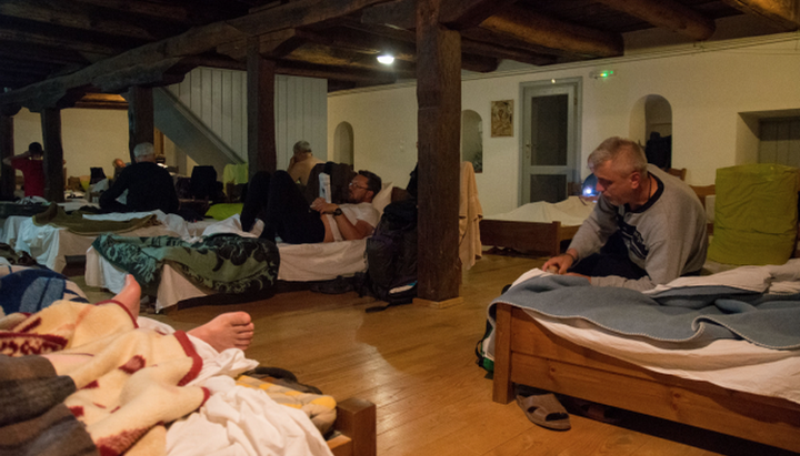 Мужчины готовятся к ночи по-мужски. Собирают предметы первой необходимости, читают, болтают, проверяют смартфоны, смотрят на потолок и храпят. Кто-то, кто спал ближе всех к выключателю, был любезен и выключил свет на ночь. Концерт из 24 храпящих глоток оглашал окружающее пространство», – пишет паломник.