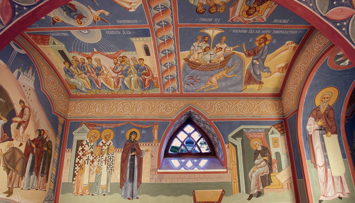 Явление Богородицы прп. Герману отражено в росписях Святогорской лавры
