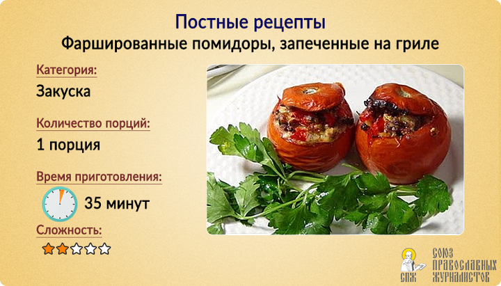Постные рецепты: Фаршированные помидоры, запеченные на гриле