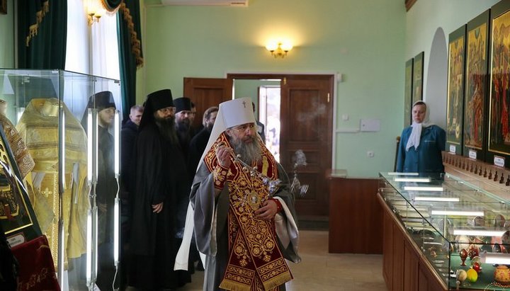 Экспозицию православных икон в музее Свято-Успенской Святогорской лавры в праздник Воскресения Христова открыл митрополит Святогорский Арсений, сообщает сайт обители.