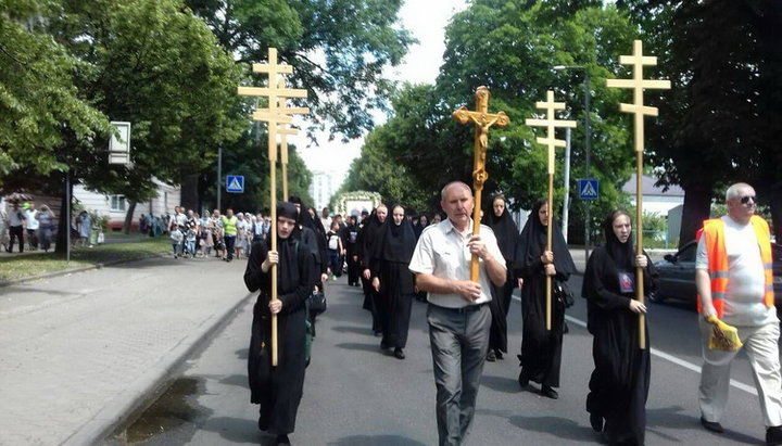 В 13.00, после молебна, Крестный ход, который возглавил епископ Дубенский Пимен, стартовал от Свято-Георгиевского подворья Ровно.