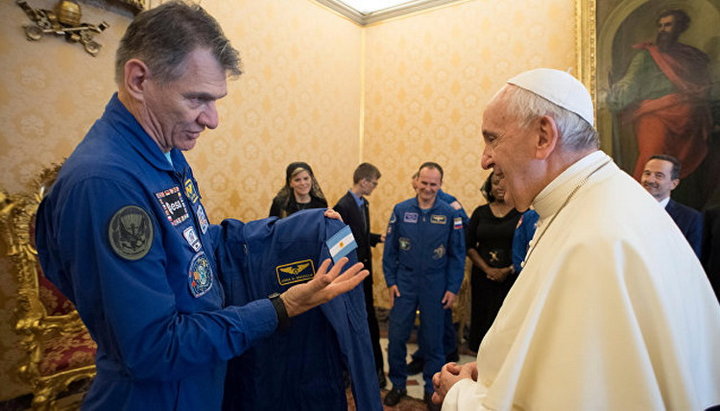 Экипаж МКС подарил папе Франциску комбинезон космонавта