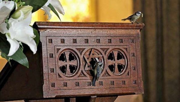 Синицы-лазоревки свили гнездо в трибуне викария, сообщает Правмир.