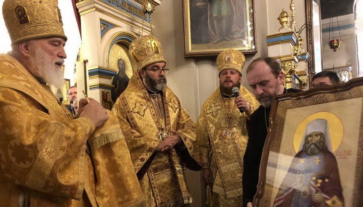 По случаю престольного праздника епископ Виктор поднес в дар белорусскому храму икону священномученика Владимира, митрополита Киевского и Галицкого