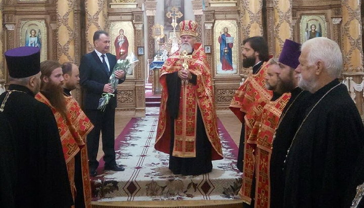 После молебна настоятель Екатерининского собора протоиерей Петр Коваль передал всем присутствующим приветственные слова от митрополита Херсонского и Таврического Иоанна и поздравил с Днём города.