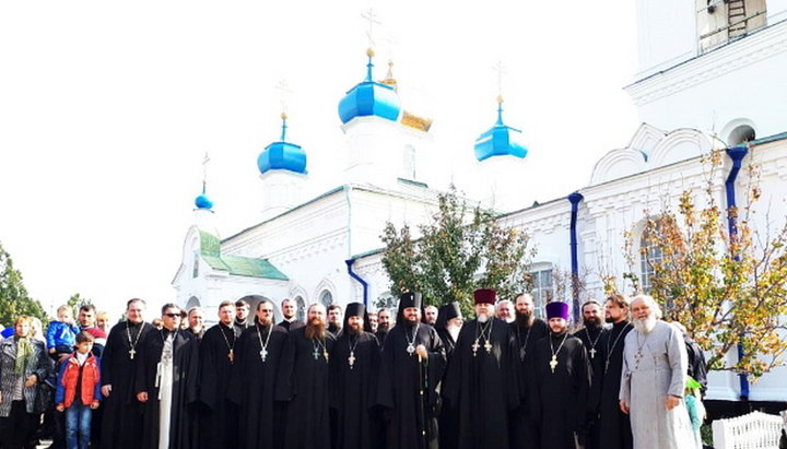 За Божественной литургией архиепископу Ефрему сослужили благочинный Бильмакского округа и духовник монашествующих епархии архимандрит Димитрий (Михешкин), отцы-благочинные всех церковных округов, и.о. наместника монастыря иеромонах Макарий (Пасичный), а также многочисленное духовенство Бердянской епархии.