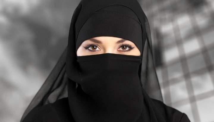 Никаб – закрывающий лицо мусульманский женский головной убор с узкой прорезью для глаз