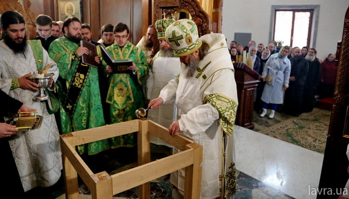 В новой церкви, которую митрополит Павел освятил на территории Свято-Богородичного Ризоположенческого мужского монастыря, совершили праздничную литургию.