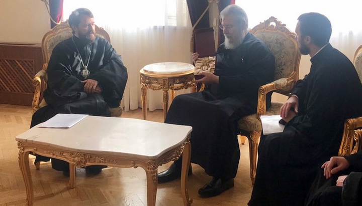 В ходе встречи был обсужден широкий круг вопросов, касающихся двух Церквей, а также развитие событий в церковной ситуации Украины.